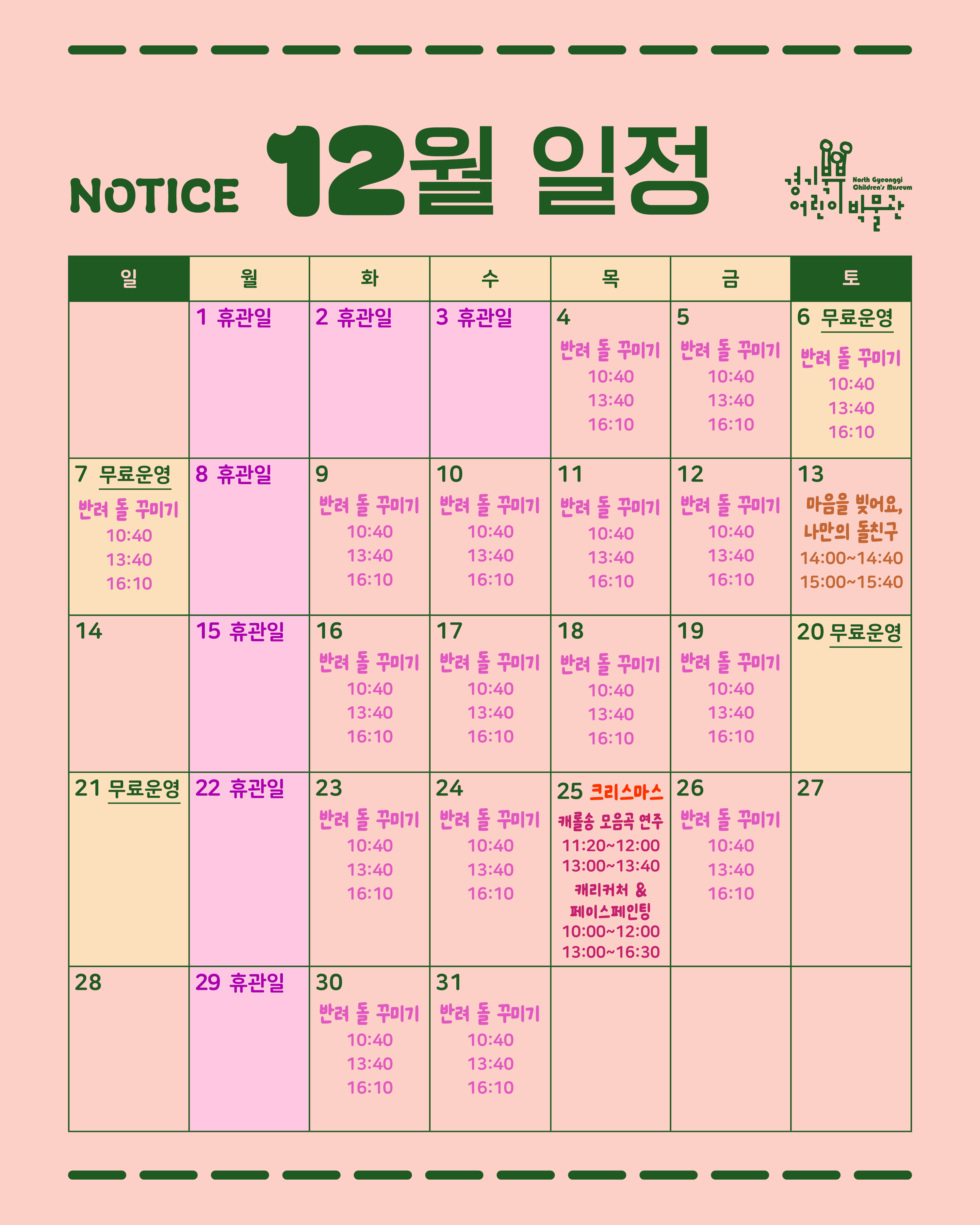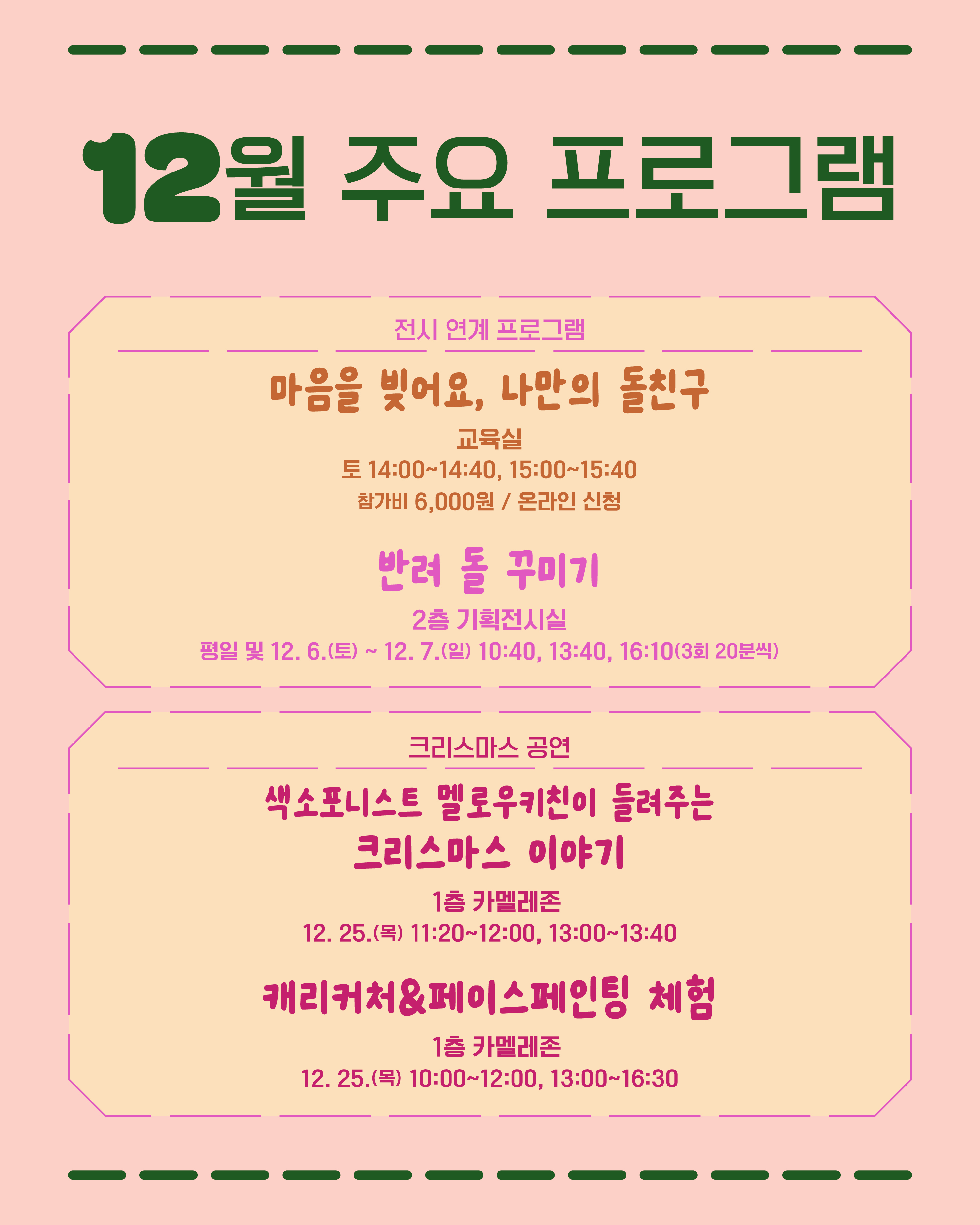 🪨 12월 6일(토), 7일(일)과 평일(화~금)에는 기획전시 연계 ‘반려돌 꾸미기’ 체험이,