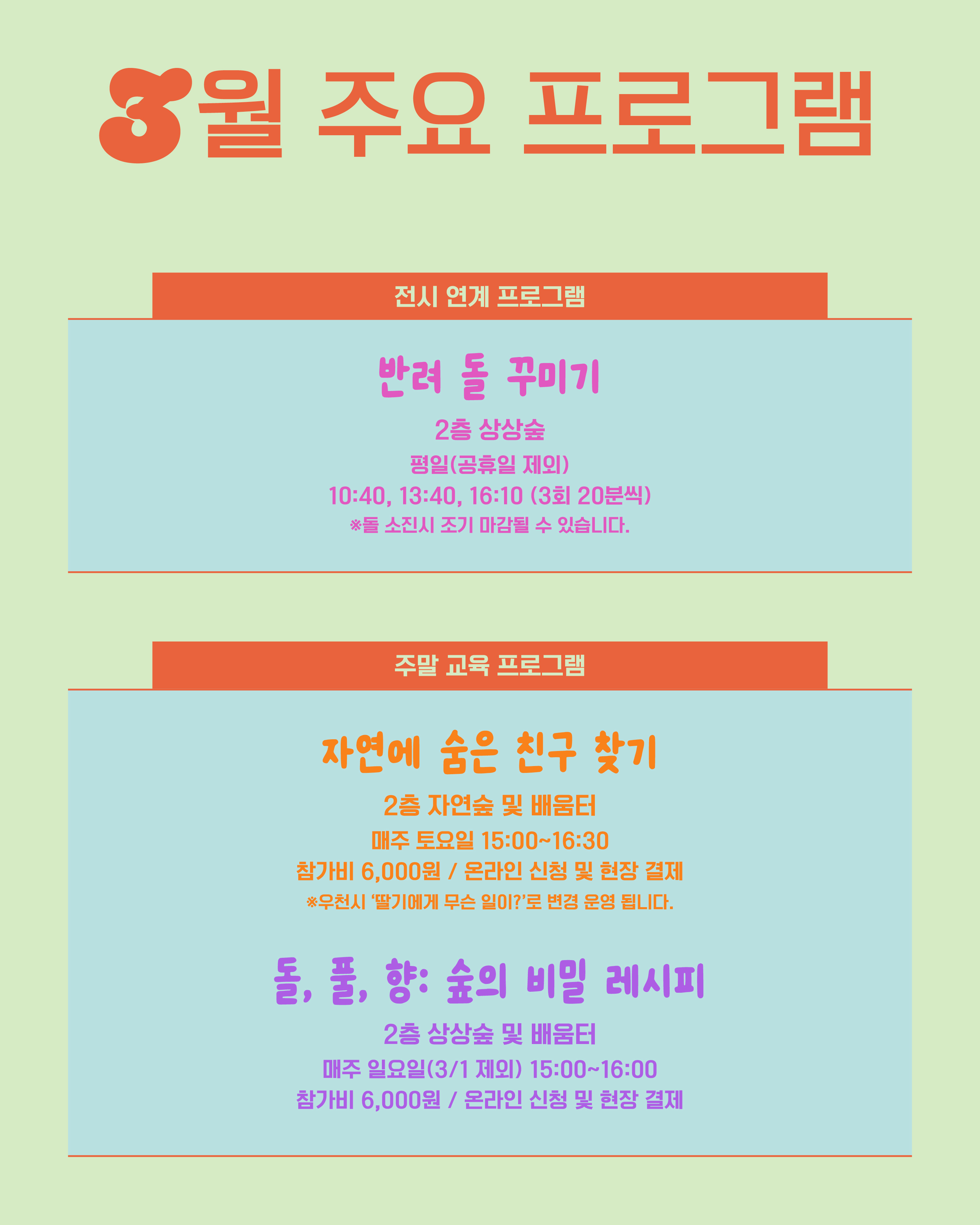 (※ 공휴일 다음날인 3/3(화)는 임시 휴관으로 쉬어갑니다.)